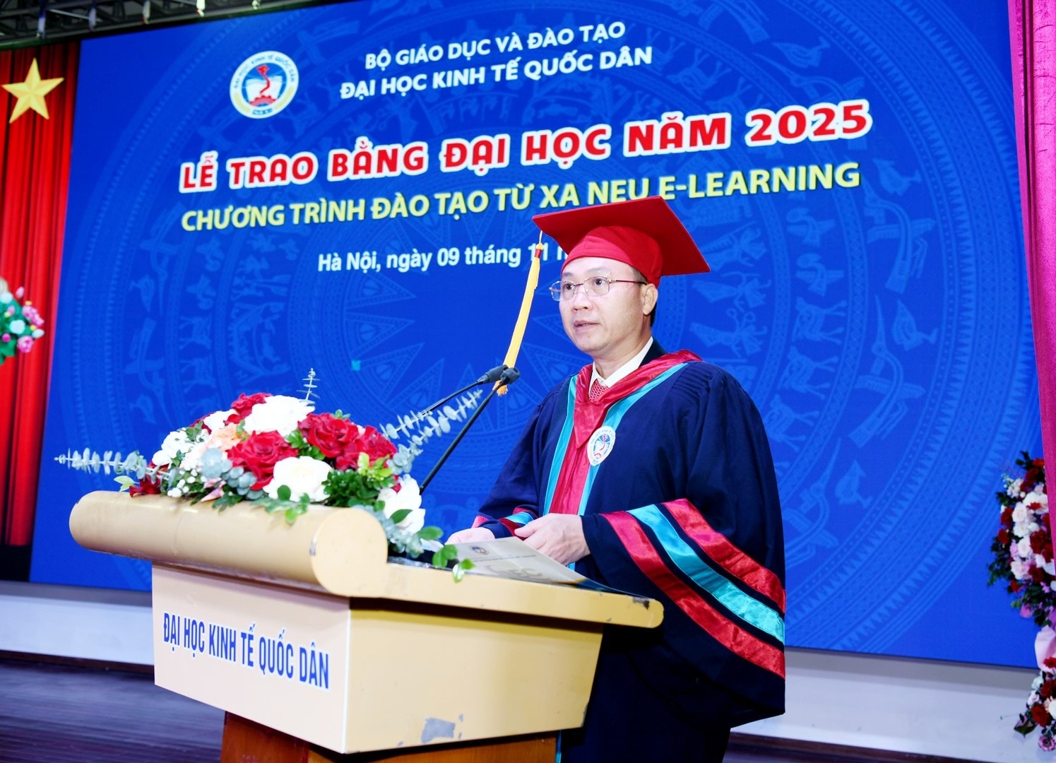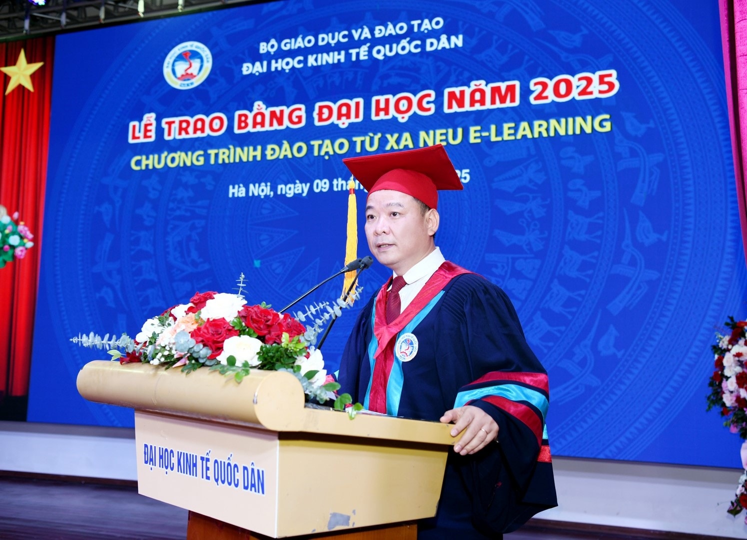 Nhắn gửi tới các tân cử nhân ba thông điệp ý nghĩa: hãy nuôi dưỡng tinh thần học tập suốt đời; giữ vững bản lĩnh và khát vọng để biến khó khăn thành cơ hội; và luôn sống, làm việc có trách nhiệm với xã hội. Giám đốc Đại học Kinh tế Quốc dân tin tưởng rằng với nền tảng tri thức, kỹ năng và giá trị đã được trang bị, các tân cử nhân chương trình đào tạo từ xa NEU E-Learning sẽ tiếp tục tỏa sáng, khẳng định bản thân và đóng góp tích cực cho sự phát triển của cộng đồng và đất nước.