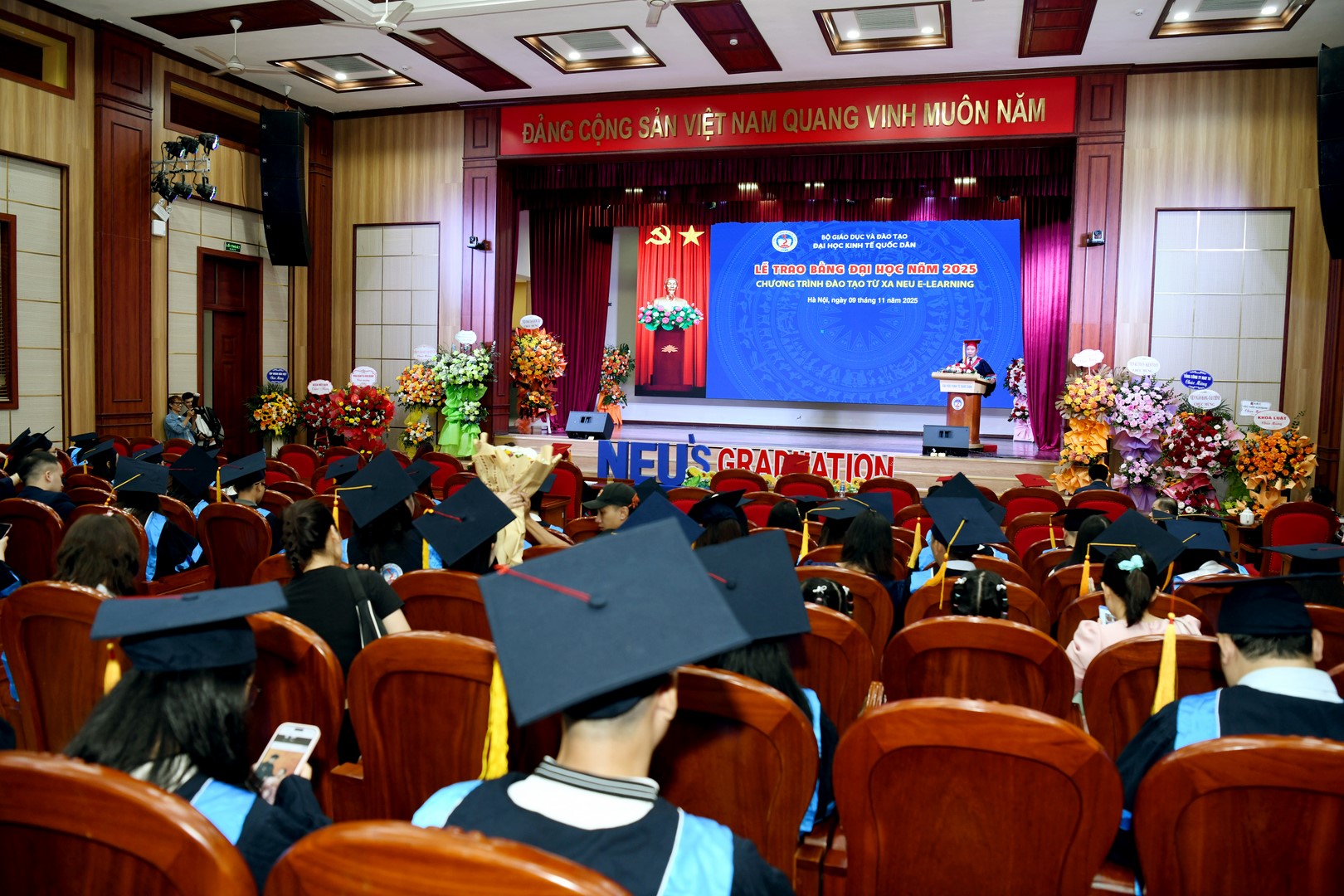 Ngày 09/11/2025, Đại học Kinh tế Quốc dân đã tổ chức Lễ trao bằng Đại học cho sinh viên chương trình Đào tạo từ xa NEU E-Learning đợt 2 năm 2025 tại Hà Nội, đánh dấu hành trình học tập bền bỉ và đầy nỗ lực của các học viên trong suốt 4 năm qua.