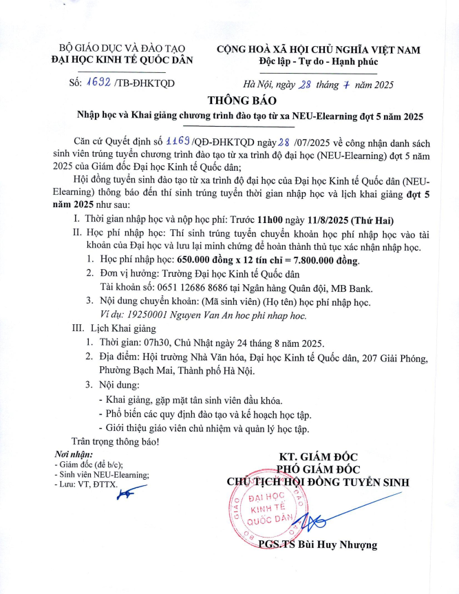 Căn cứ Quyết định số 1469/QĐ-ĐHKTQD ngày 28/07/2025 về công nhận danh sách sinh viên...